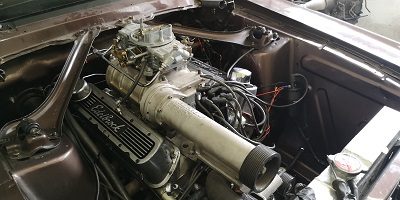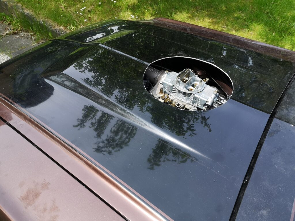Mens vi stod og snakkede afsted om mustanger, faldt mit blik på en gennemsigtig pose på hylden med en Weiand kompressor og tilhørende karburator.