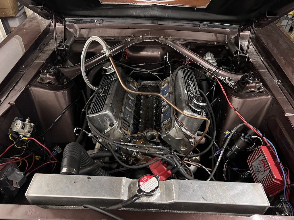 MSD tændingsboks, samt strømfordeler monteret. Under trækning af ledninger, fik jeg tilsluttet tændingsdelen til fast 12 volt fra batteriet. Det døde den af i løbet af vinteren, så nu sidder der BST versionen til tuning. Kører med 34 grader ved ca. 3000 omdrejninger og desværre ikke vakuum til fordeleren, fordi jeg fejlagtigt fik erhvervet mig en uden vakuumstuds.