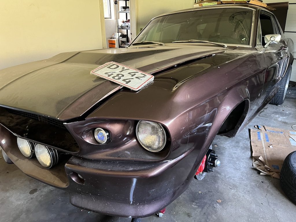 Coupe som er monteret med et eleanorkit fra USA. Hjelm, forlygter, bagklap og frontspoiler er ændret i forhold til den originale bil.