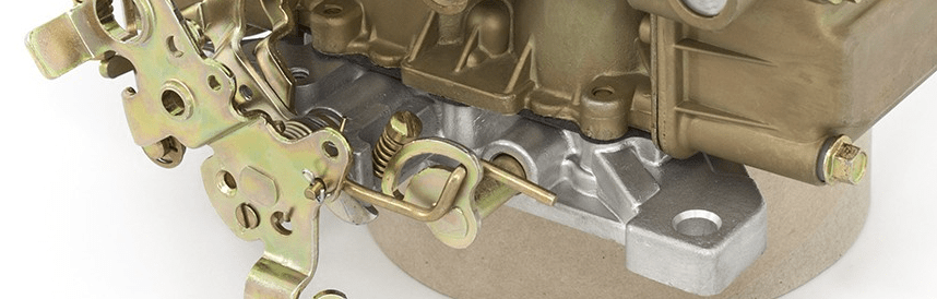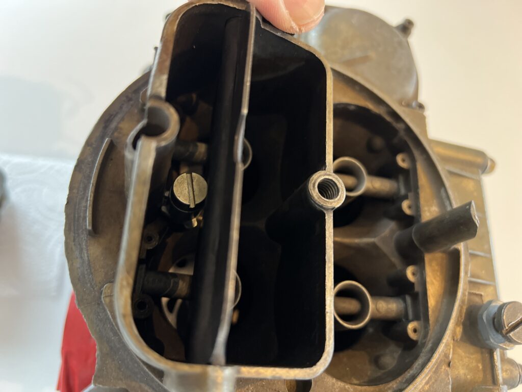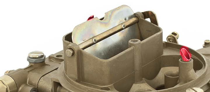 Når spjældet åbnes kan anes 2 slidser. De giver benzin til overgangen mellem tomgang og mere gas, efterhånden som åbningen af spjældet eksponerer dem for trækket fra motoren.