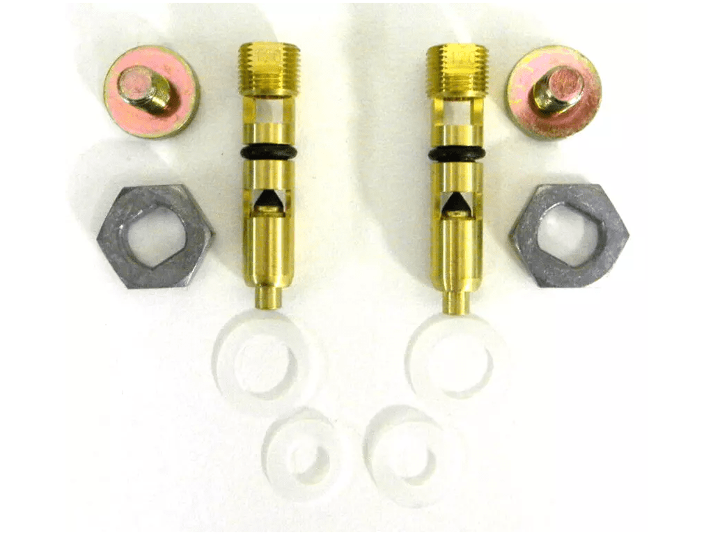 Sådan ser Holleys nåleventiler ud. Flyderen trykker på bunden af ventilen og den trykkes så op og lukker med den lille sorte gummipakning.